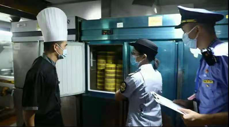 隨后,廣州市荔灣區(qū)市場監(jiān)管局執(zhí)法人員對轄區(qū)內“泮溪酒家”“蔡瀾點心”等餐飲單位進行突擊檢查。檢查從經(jīng)營資質、原材料進貨到加工制作流程。執(zhí)法人員還重點對自制點心使用食品添加劑等情況進行查看,發(fā)現(xiàn)“蔡瀾點心”的冷藏、冷凍柜部分原料、半成品、成品的標識不齊,執(zhí)法人員已要求立即予以整改。