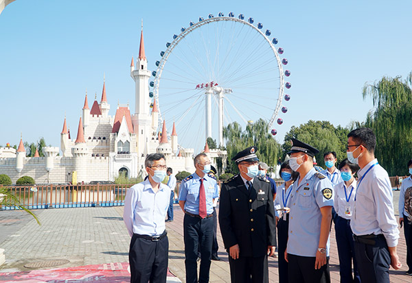 執(zhí)法人員對北京市石景山游樂園特種設(shè)備進行巡查。