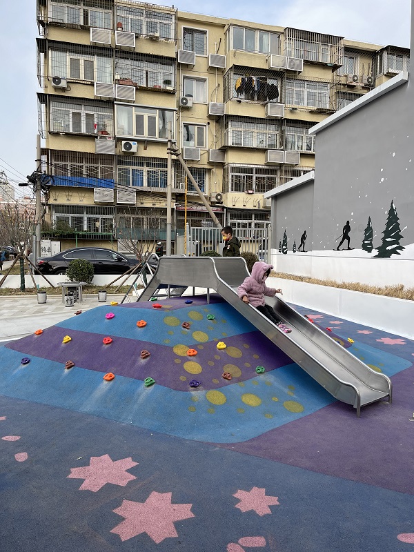 北京市海淀區(qū)甘家口街道利用街邊空地修建的免費兒童樂園。孫蔚/攝