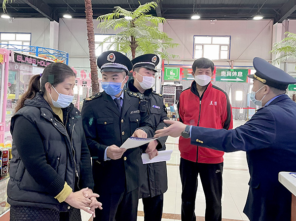 執(zhí)法人員檢查商戶的預(yù)付費(fèi)合同。董芳忠/攝