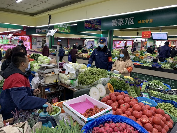 建鄴區(qū)市場監(jiān)管局工作人員檢查農(nóng)貿(mào)市場。資料圖片