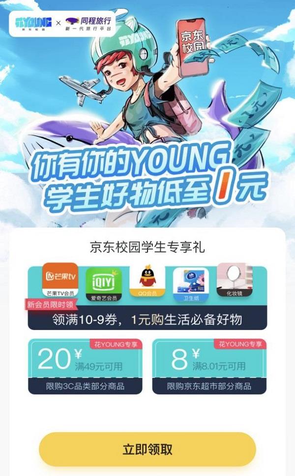 具體而言,同程旅行黑鯨學生卡用戶可享受京東校園專屬權(quán)益,包括學生專享優(yōu)惠券、學生專享卡、一元試用、京東校園PLUS卡購買等特權(quán),覆蓋生活、圖書、健康、寄件等與學生密切相關(guān)的各個領域。而京東校園用戶,則能夠得到酒店、火車票、機票、景點門票、打車、汽車票等大額紅包以及機票發(fā)票免費郵寄、火車票搶票加速、機場免費泊車等尊享出行服務。