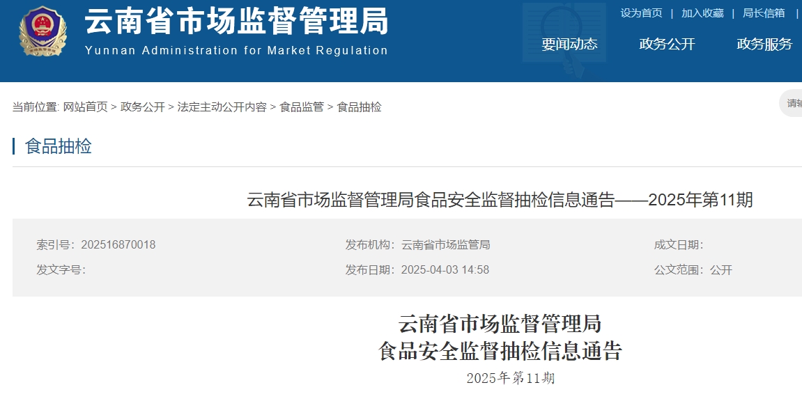 近期,云南省市場監(jiān)督管理局組織食品安全監(jiān)督抽檢982批次樣品,檢出26批次樣品不合格。產(chǎn)品抽檢結(jié)果可查詢https://amr.yn.gov.cn/。