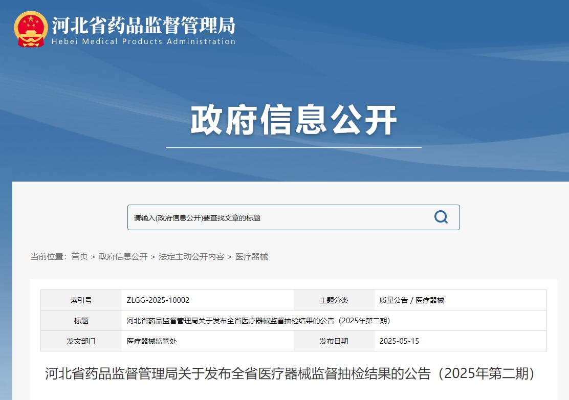 為加強(qiáng)醫(yī)療器械質(zhì)量監(jiān)督管理,保障醫(yī)療器械產(chǎn)品安全有效,按照《醫(yī)療器械監(jiān)督管理?xiàng)l例》及《河北省醫(yī)療器械監(jiān)督抽驗(yàn)管理辦法》有關(guān)規(guī)定,省藥品監(jiān)督管理局組織對2024年全省生產(chǎn)、經(jīng)營和使用等環(huán)節(jié)醫(yī)療器械進(jìn)行了質(zhì)量監(jiān)督抽檢。發(fā)現(xiàn)10批次產(chǎn)品(詳見附件)不符合標(biāo)準(zhǔn)規(guī)定,并已依法分別予以查處,現(xiàn)予以公開。