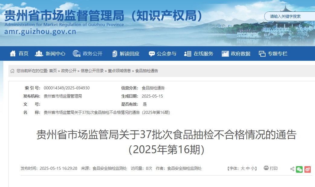對抽檢發(fā)現(xiàn)的不合格食品,貴州省市場監(jiān)管局已責成屬地市場監(jiān)管部門立即組織開展核查處置,查清產(chǎn)品流向,督促企業(yè)采取下架、召回不合格產(chǎn)品等措施控制風險;對違法違規(guī)行為,依法及時處理。