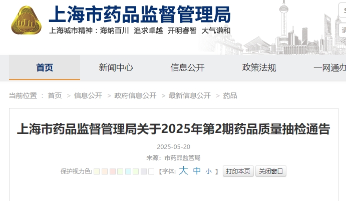上海市藥品監(jiān)督管理局官網(wǎng)截圖