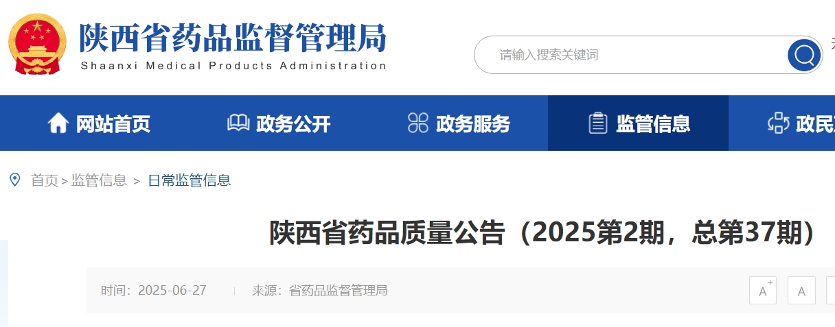 陜西省藥品監(jiān)督管理局官網(wǎng)截圖