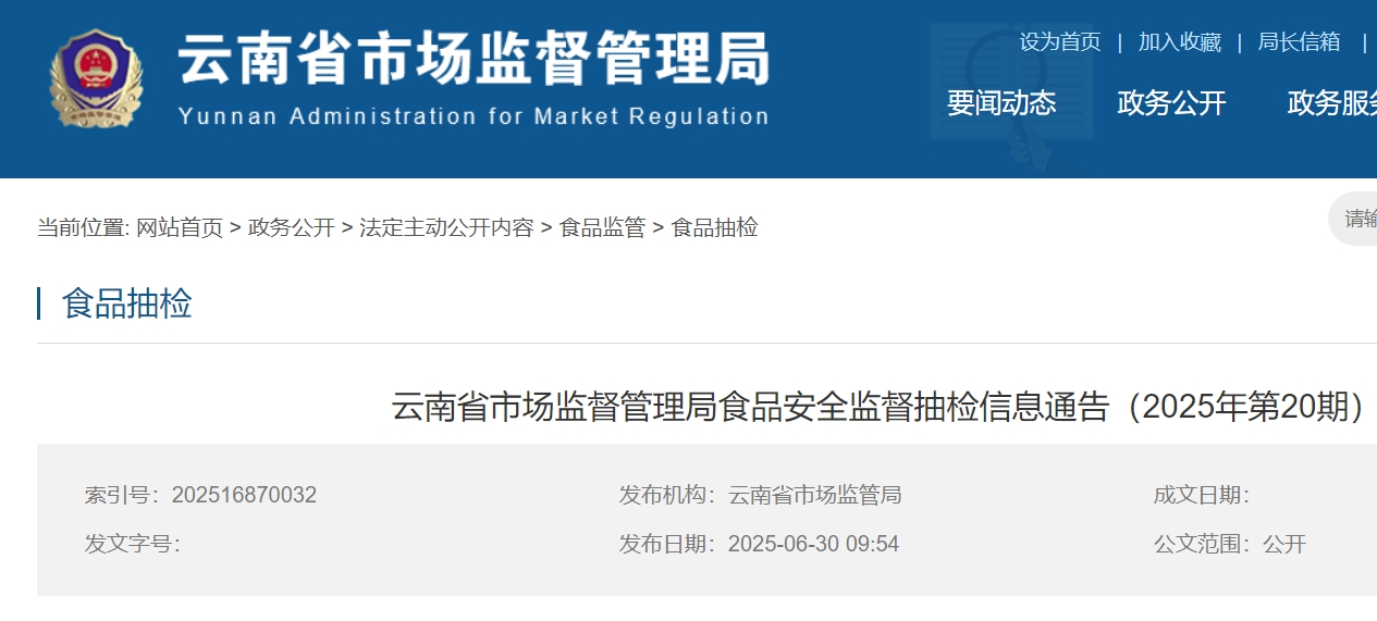 近期,云南省市場(chǎng)監(jiān)督管理局組織食品安全監(jiān)督抽檢1728批次樣品,檢出25批次樣品不合格。產(chǎn)品抽檢結(jié)果可查詢https://amr.yn.gov.cn/。