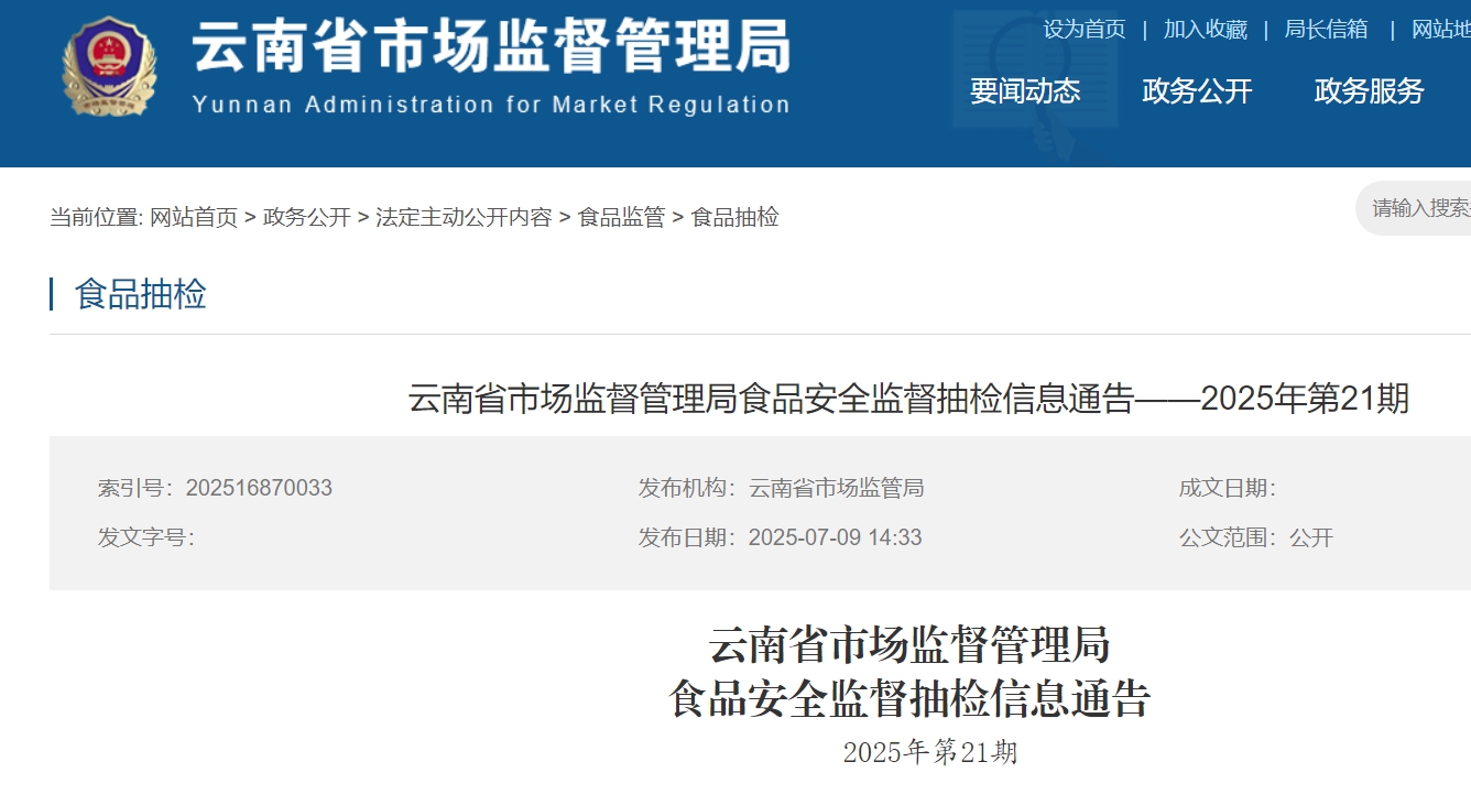 近期,云南省市場監(jiān)督管理局組織食品安全監(jiān)督抽檢1405批次樣品,檢出23批次樣品不合格。產(chǎn)品抽檢結(jié)果可查詢https://amr.yn.gov.cn/。