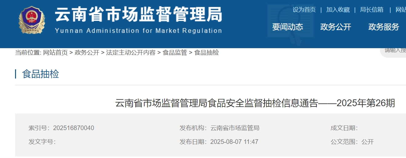 近期,云南省市場(chǎng)監(jiān)督管理局組織食品安全監(jiān)督抽檢780批次樣品,檢出15批次樣品不合格。產(chǎn)品抽檢結(jié)果可查詢(xún)https://amr.yn.gov.cn/。