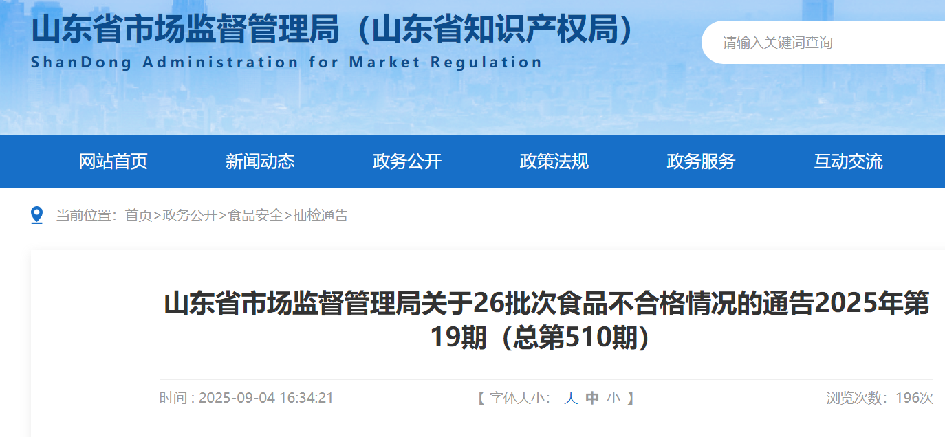 根據(jù)《中華人民共和國食品安全法》及其實施條例等有關(guān)規(guī)定和山東省食品安全監(jiān)督抽檢計劃安排,為進一步保障食品安全,省市場監(jiān)管局對保健食品、餅干、餐飲食品、炒貨食品及堅果制品、蛋制品、豆制品、方便食品、蜂產(chǎn)品、糕點、酒類、糧食加工品、肉制品、乳制品、食品添加劑、食糖、食用農(nóng)產(chǎn)品、食用油、油脂及其制品、蔬菜制品、薯類和膨化食品、水產(chǎn)制品、水果制品、速凍食品、調(diào)味品、飲料共2053批次樣品進行了監(jiān)督抽檢,其中合格產(chǎn)品2027批次,不合格產(chǎn)品26批次。具體情況見附件。