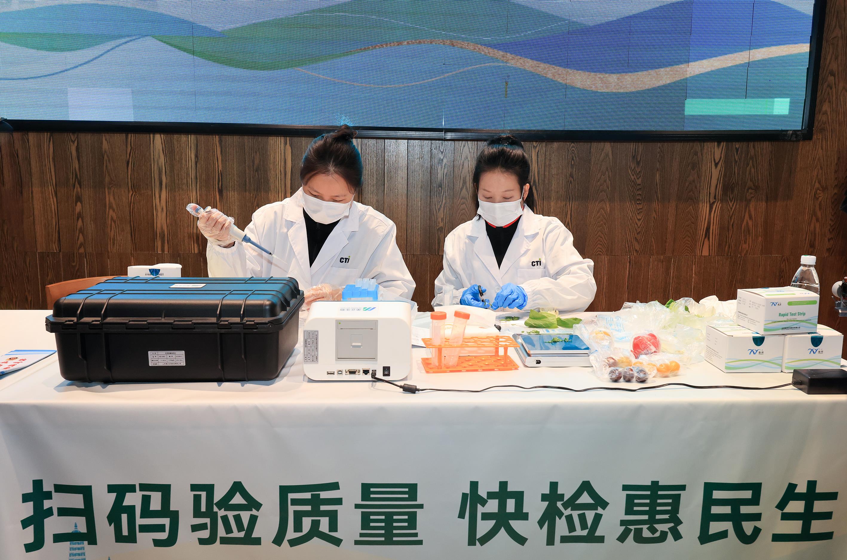 活動現(xiàn)場,檢測人員開展快檢。馮鐵飛/攝