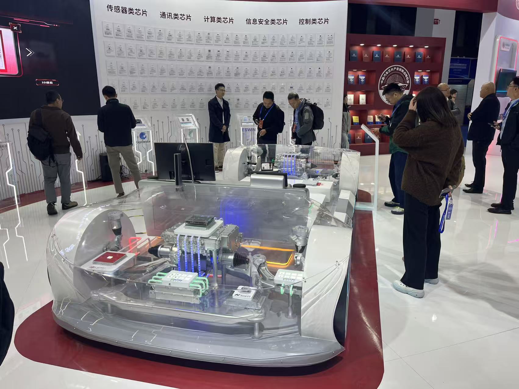 作為衡量智能網(wǎng)聯(lián)汽車水平的重要因素,芯片等級(jí)和質(zhì)量直接決定了整車產(chǎn)品的可靠性和智能化水平。在技術(shù)成果展示區(qū),一臺(tái)搭載國(guó)產(chǎn)芯片的全尺寸透明車模成為焦點(diǎn)。這臺(tái)車模不僅完整呈現(xiàn)了“中央集中+區(qū)域控制”的電子電氣架構(gòu),更通過(guò)3D互動(dòng)技術(shù),讓觀眾直觀感受國(guó)產(chǎn)芯片如何重構(gòu)智能汽車的“神經(jīng)中樞”。