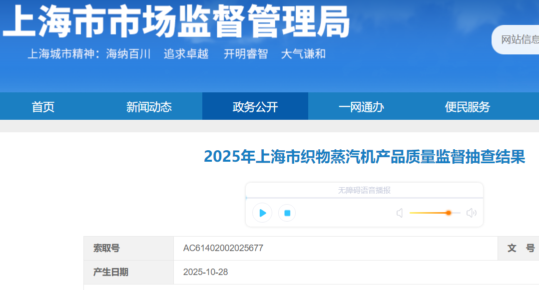 本次監(jiān)督抽查依據(jù)SHSSXZ0061-2025《織物蒸汽機(jī)上海市產(chǎn)品質(zhì)量監(jiān)督抽查實(shí)施細(xì)則》組織實(shí)施。