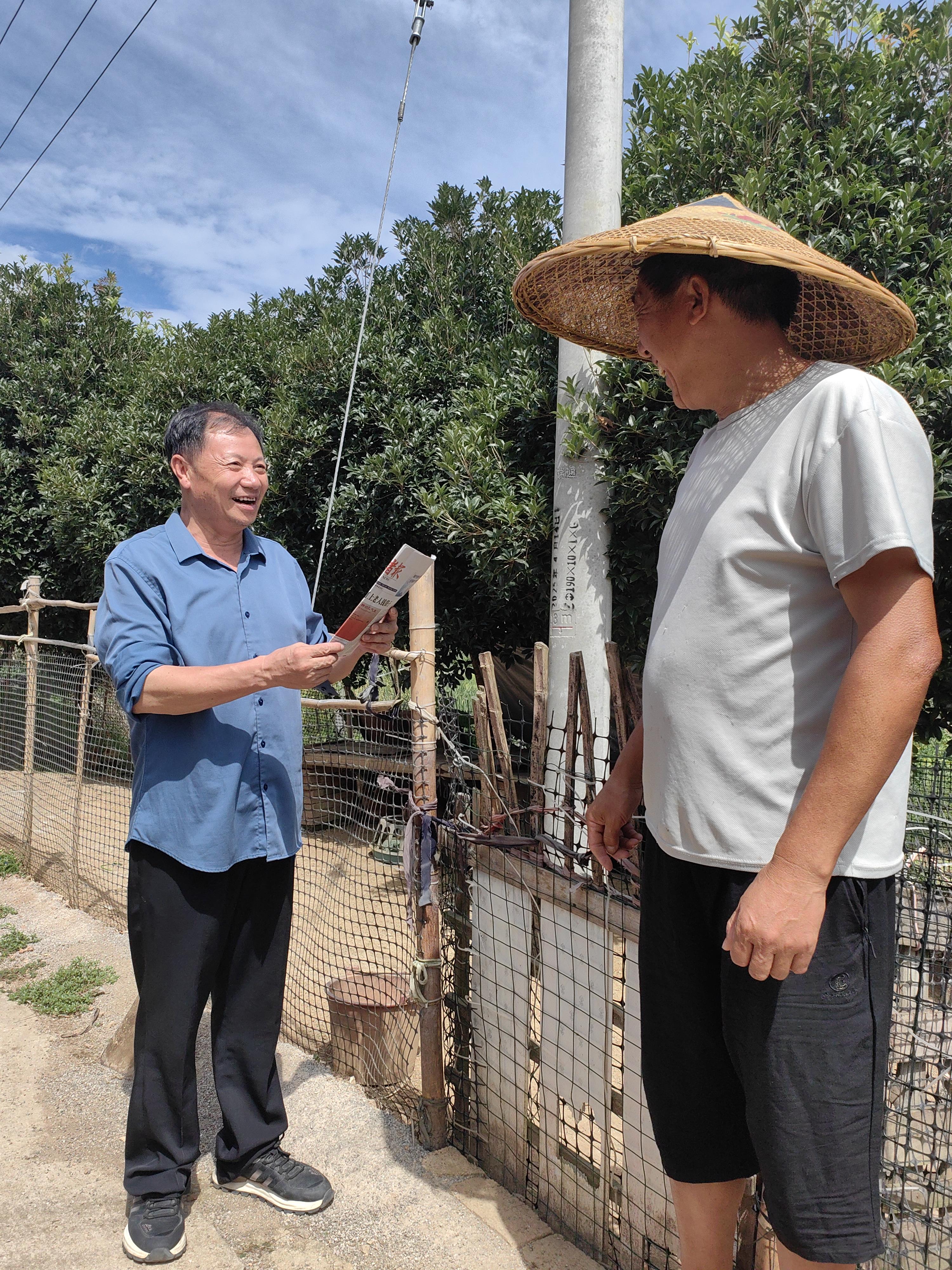 吳石林深入田間地頭向村民宣傳消費(fèi)維權(quán)知識。余知都/攝