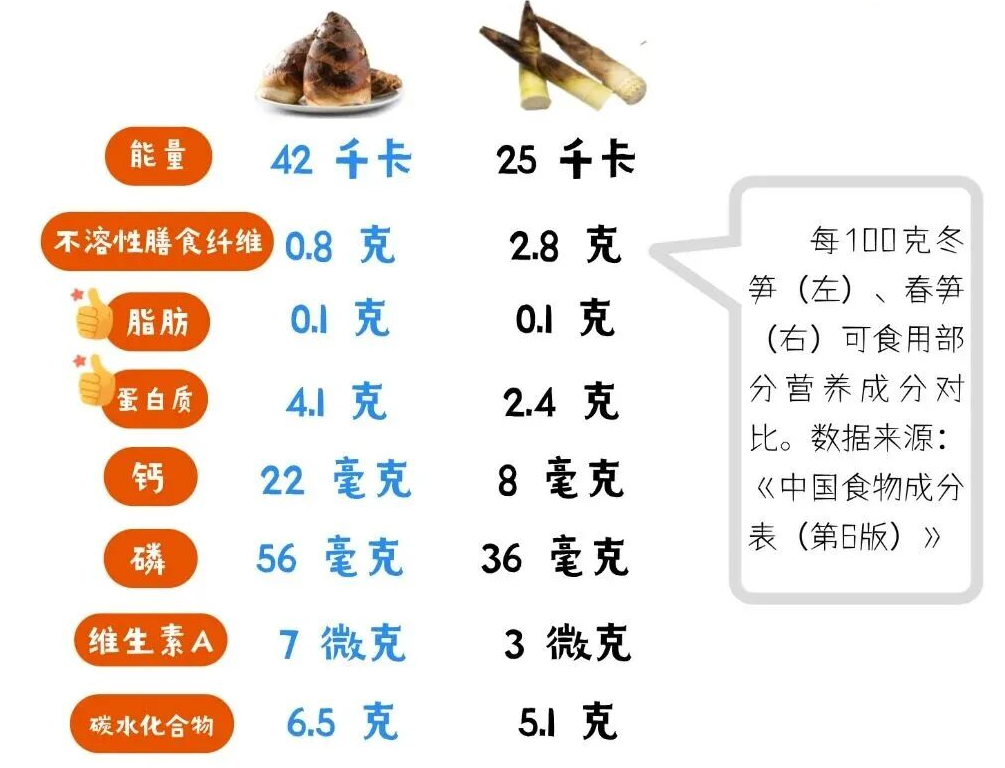 冬筍、春筍可食用部分營養(yǎng)成分對比。資料圖片