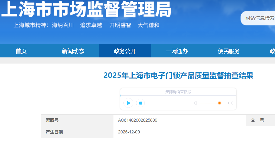 2025年上海市電子門鎖產品質量監(jiān)督抽查不合格產品