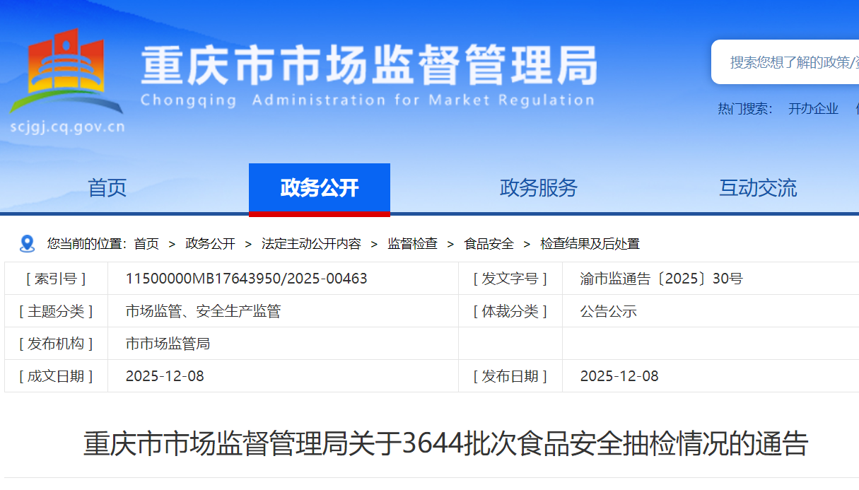 重慶市市場監(jiān)督管理局官網(wǎng)截圖