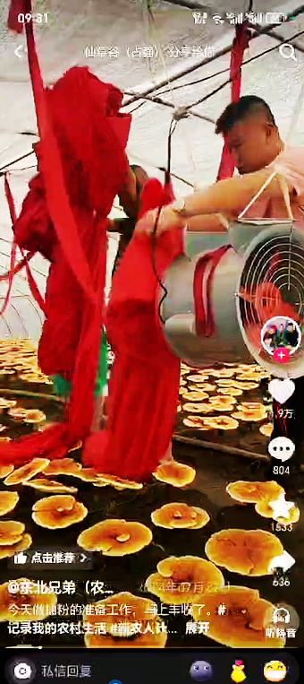 “東北兄弟”在樺甸市靈芝種植戶的大棚內(nèi)擺拍。記者截圖