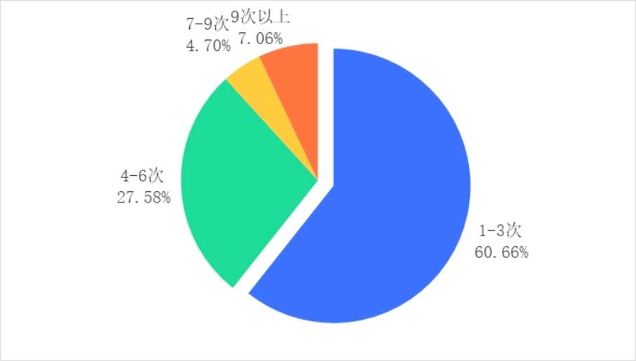 在旅游頻次與時(shí)間方面,本次調(diào)查中旅游次數(shù)為1—3次的受訪者占比較高,為60.66%,其次為4—6次,占比為27.58%。其中,周末休息日(周六、日)出行的受訪者占44.2%。